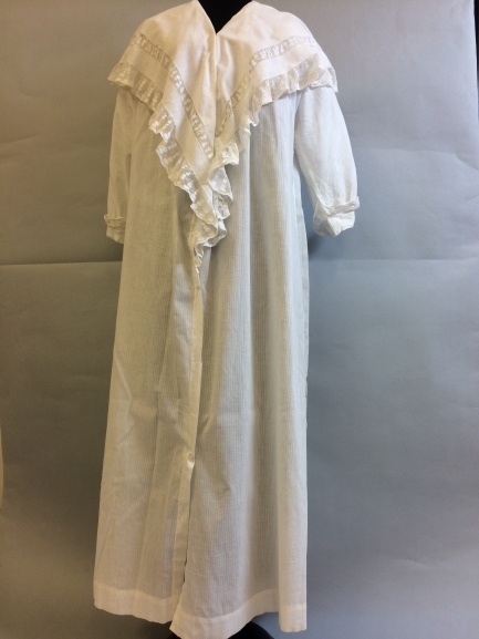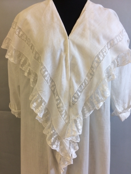 Luchtige witte ochtendjas met grote sjaalkraag afgezet met kant, gedragen door Margaretha Zelle (Mata Hari) in Indonesië