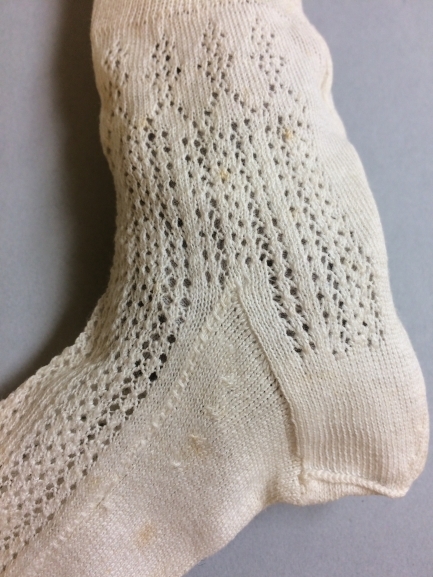 sokje met ajourbreiwerk mogelijk gedragen door Louise Jeanne MacLeod, 'Non', 1898-1919, dochter van Margaretha Zelle (Mata Hari)
