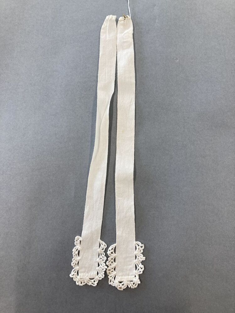 Band of lint aan een muts, uniformpet of dameshoed, onder de kin bevestigd om het hoofddeksel vast te doen staan. https://data.cultureelerfgoed.nl/term/id/cht/1dd0c4e6-4121-4a6e-bc65-34a731276e08