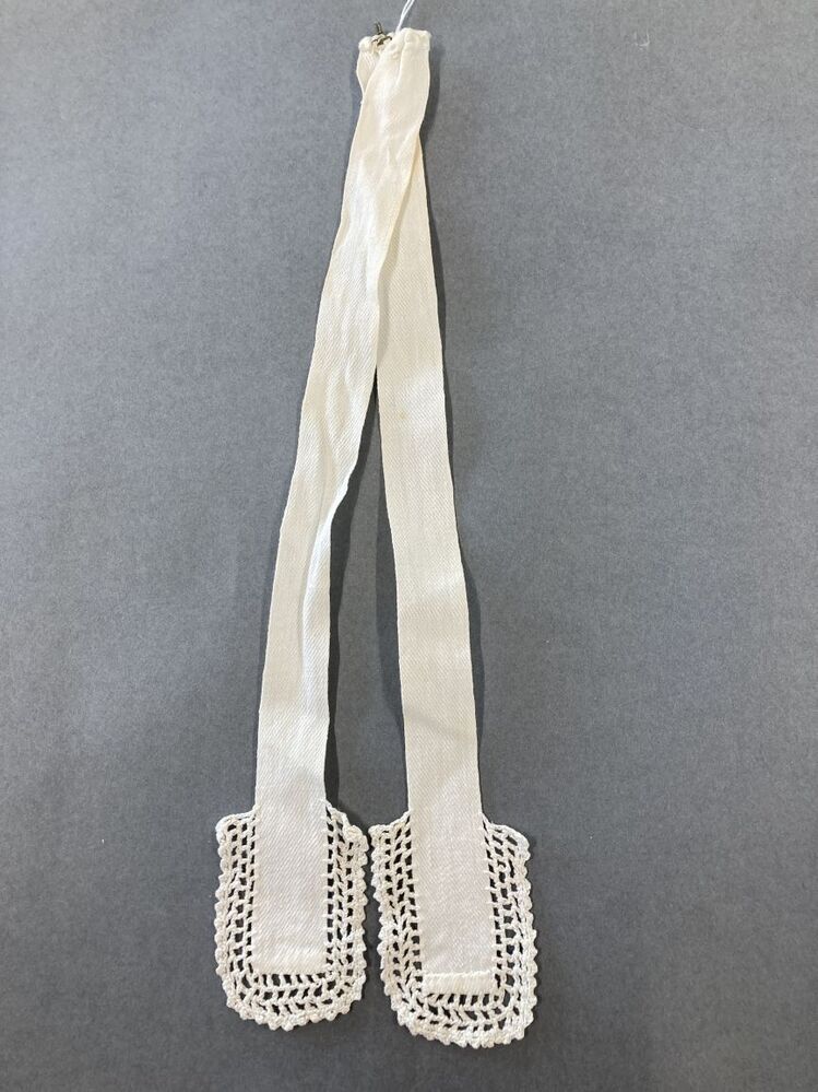 Band of lint aan een muts, uniformpet of dameshoed, onder de kin bevestigd om het hoofddeksel vast te doen staan. https://data.cultureelerfgoed.nl/term/id/cht/1dd0c4e6-4121-4a6e-bc65-34a731276e08