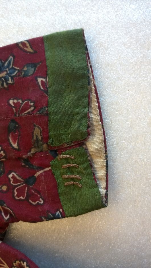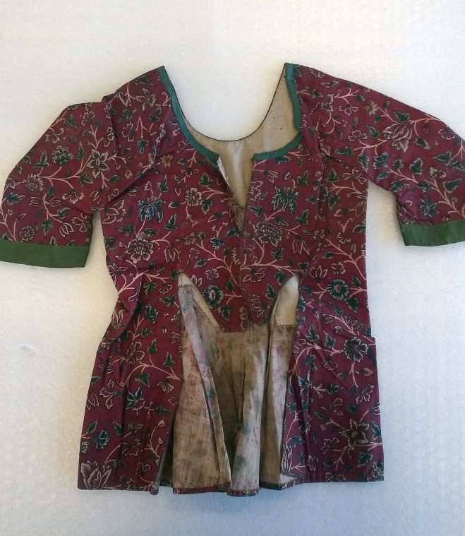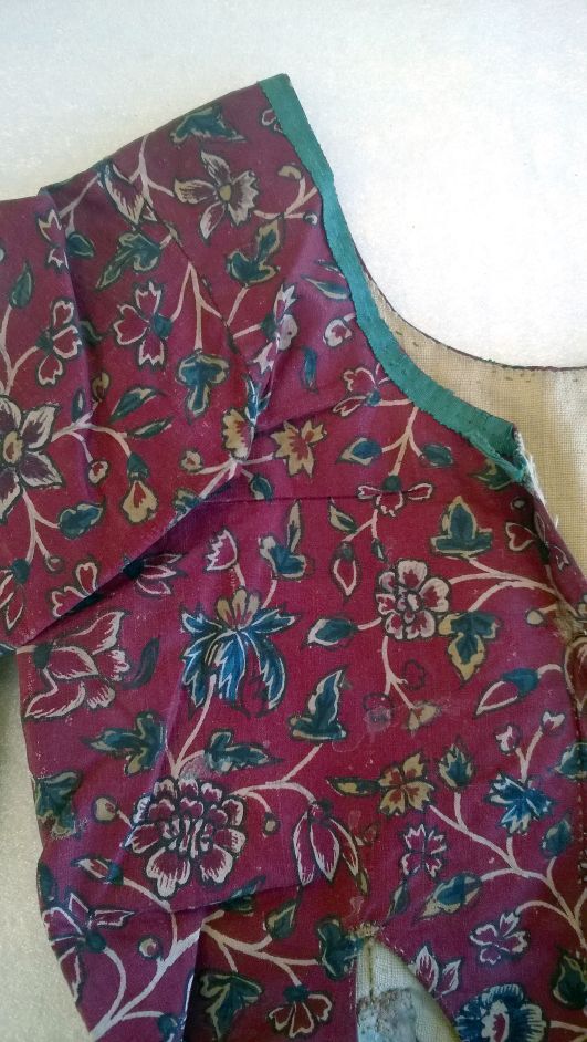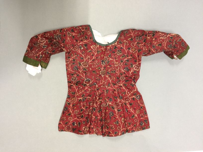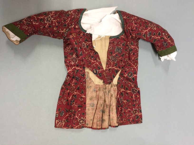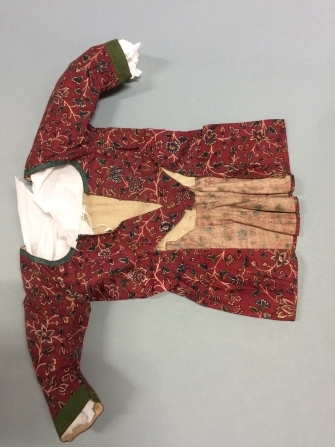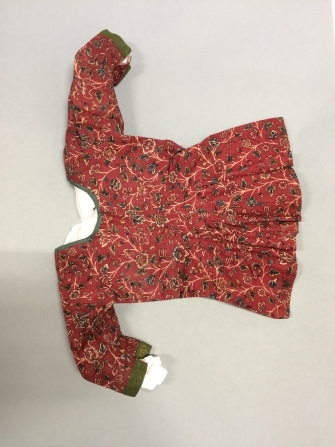 Rood sitsen jakje voor kleuter, met geplooide schoot en driekwart mouwen