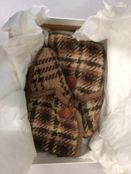 Paar hoge geruite wollen kinderpantoffels maat 20 in originele doos