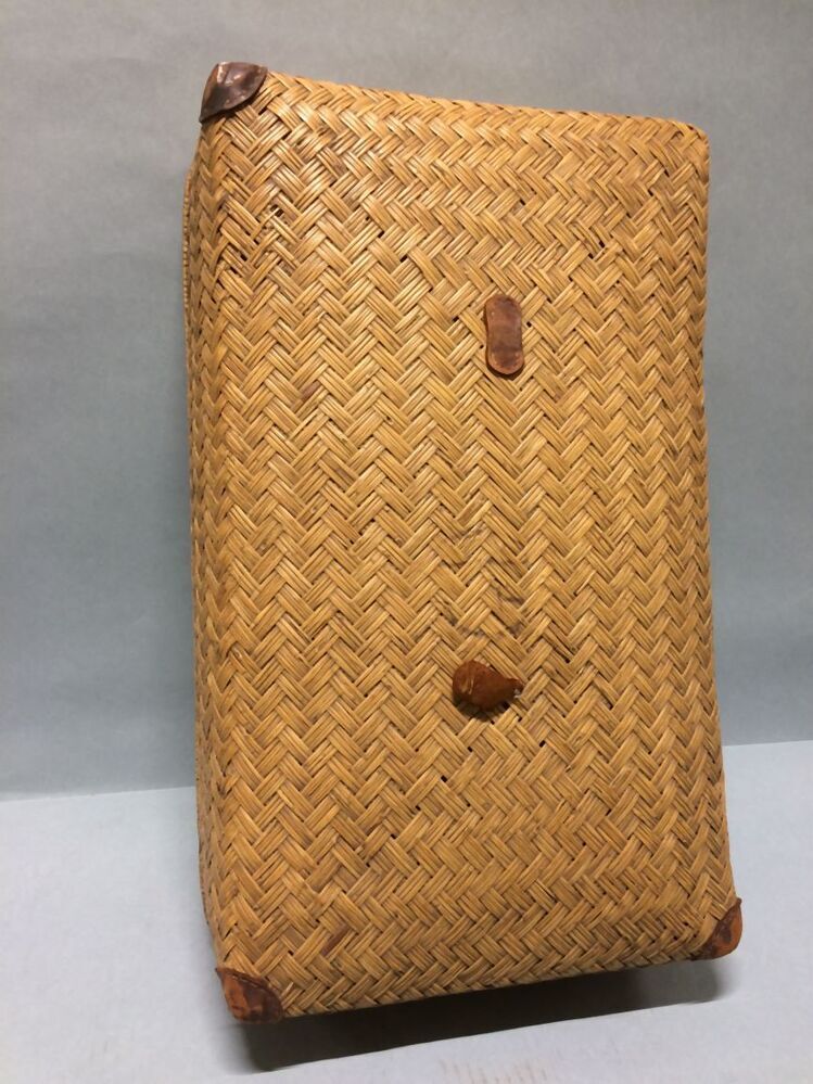 Gevlochten rieten koffer bestaande uit 2 losse delen: een binnen en een buitenbak