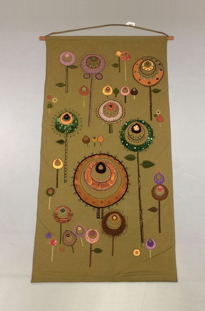 Groen wandkleed met decor van bloemen