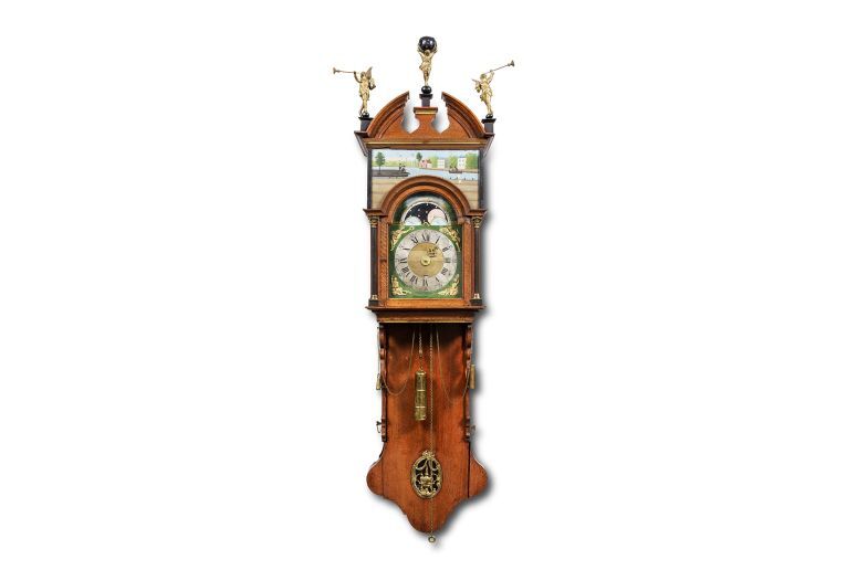 Staartklok met dubbele kap met kwartierslag, maanstand en datum