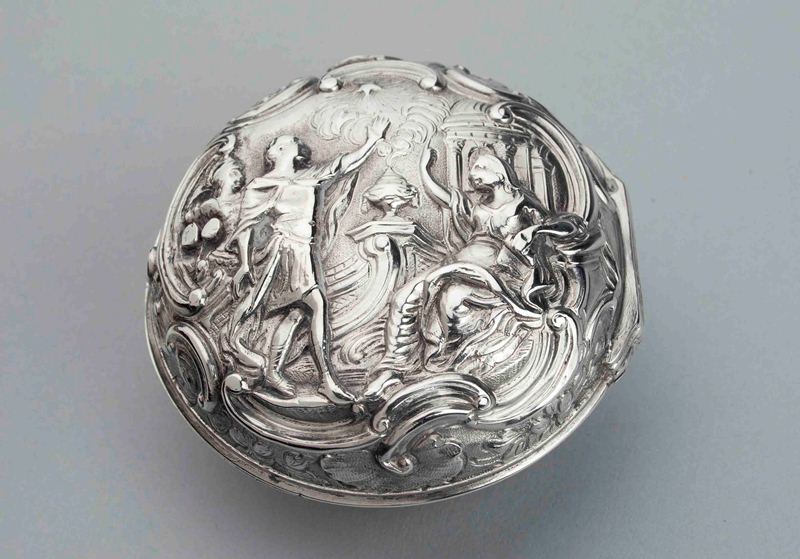 Bolvormige horlogekast, met classicistisch gedreven ornament
