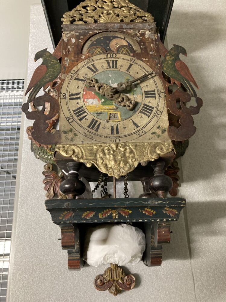 Een stoelklok is een hangklok waarbij het uurwerk met pootjes op een stoel staat. In Nederland zijn deze in de zeventiende en achttiende eeuw veel vervaardigd. Stoelklokken zijn nauw verwant aan de lantaarnklok. (Wikipedia) https://data.cultureelerfgoed.nl/term/id/cht/5cad3bb0-8818-420d-8129-17e10b3ec5b7