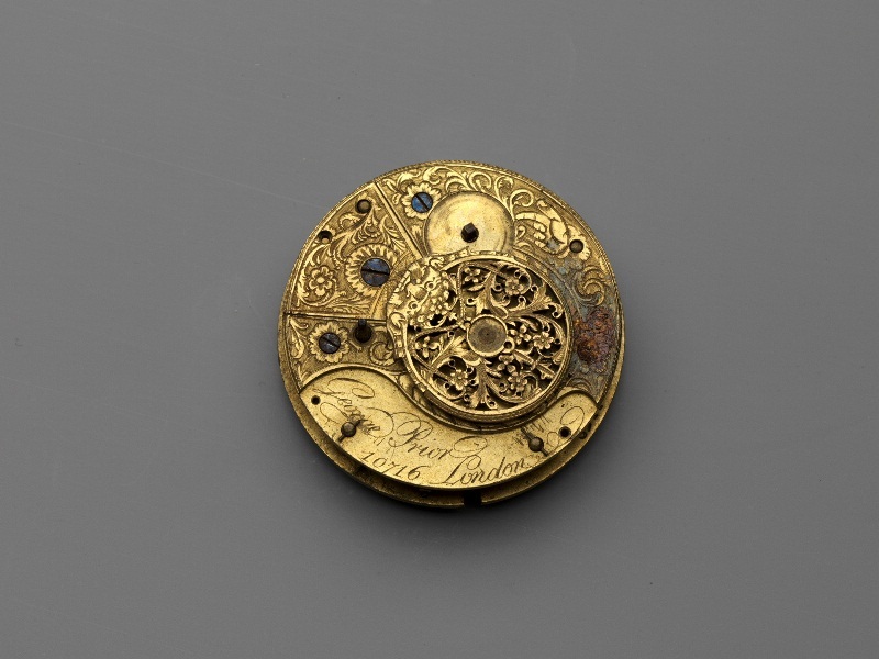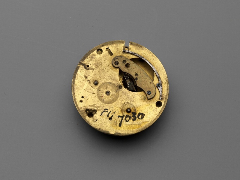 Rond horloge, op de achterkant van het uurwerk een opengewerkte kloof