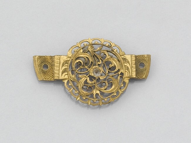 Ajour horlogekloof van verguld koper met twee rechthoekige zijstukjes