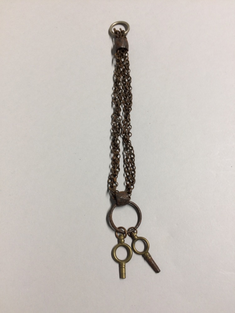 horlogeketting van vier strengs schakelketting en twee horlogesleuteltjes