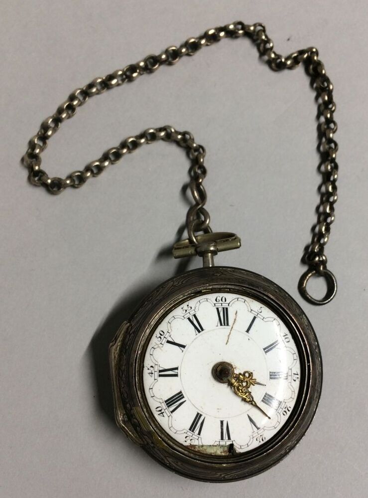 Zilveren horloge in zilveren kast met mythologische voorstelling