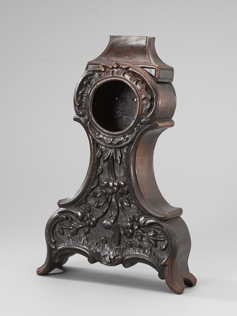 Mahoniehouten horlogestandaard in de vorm van een klok