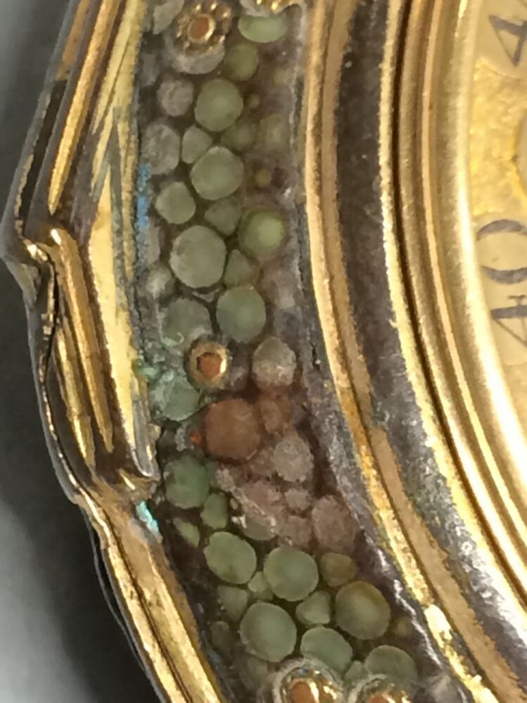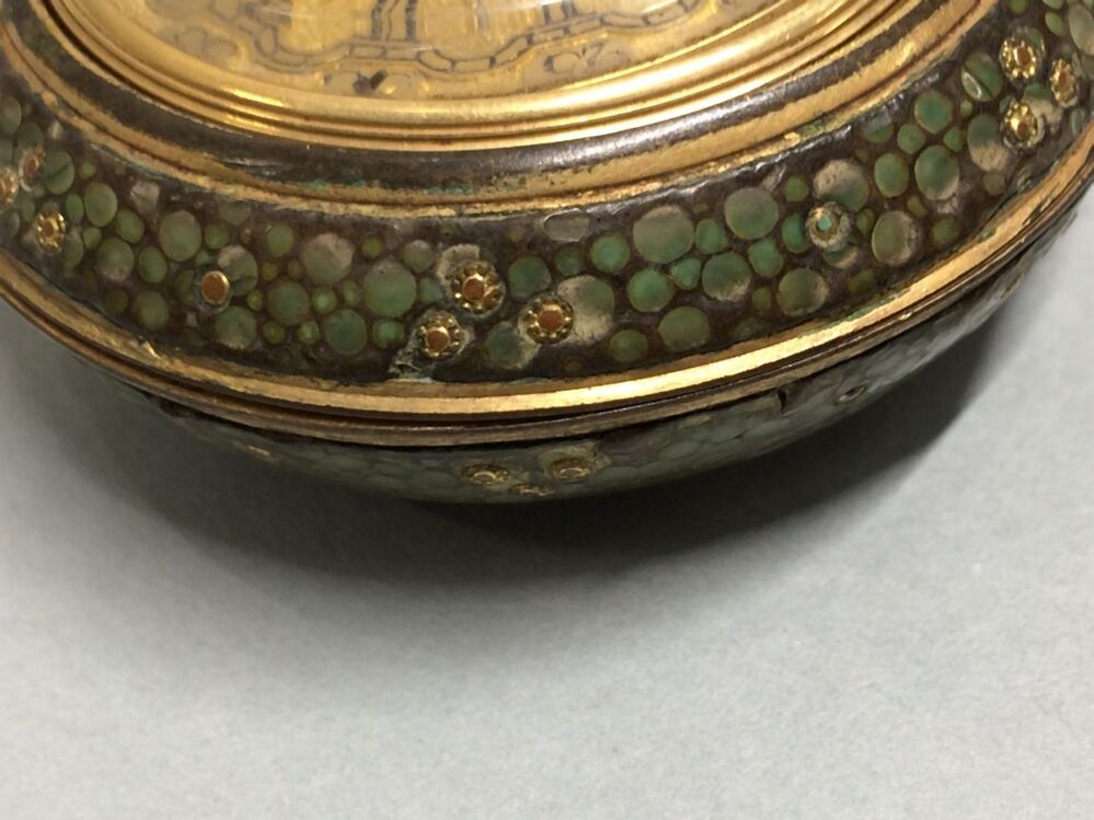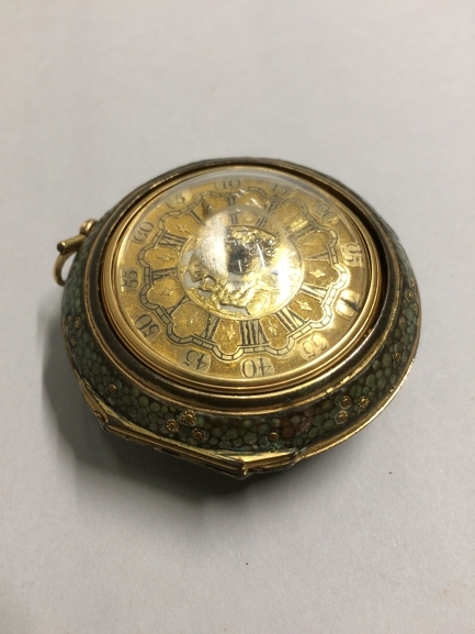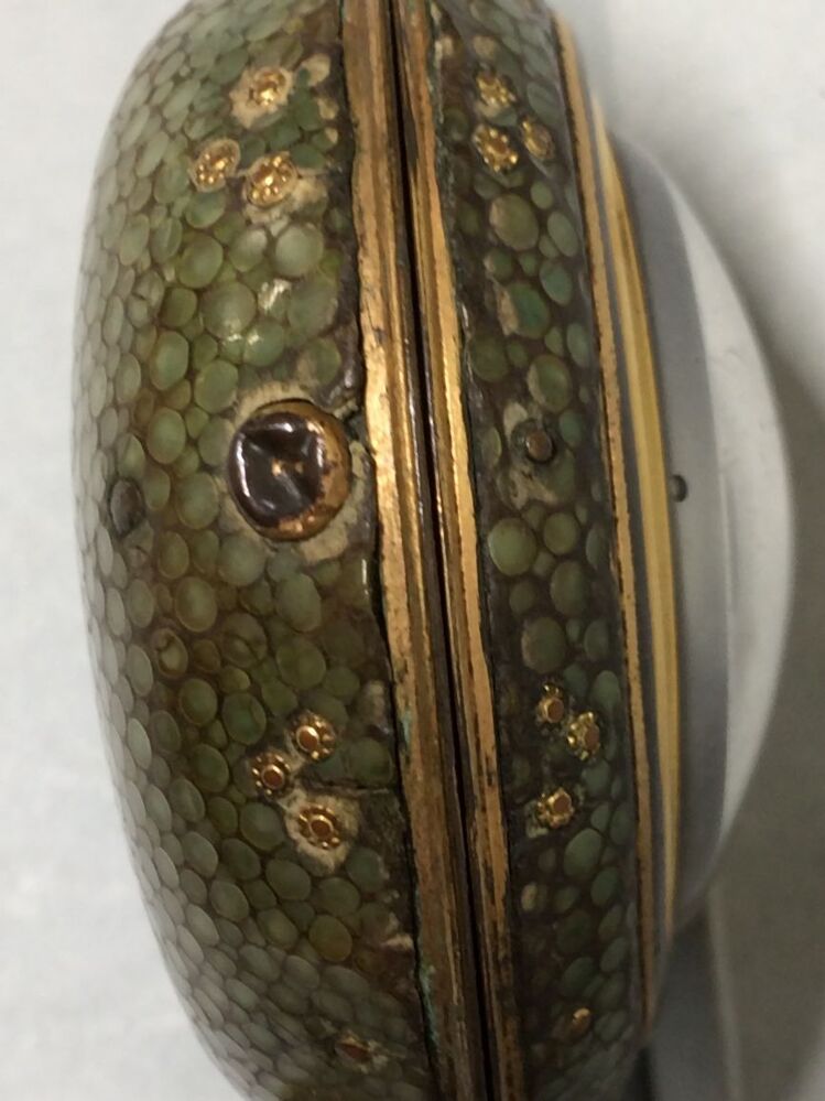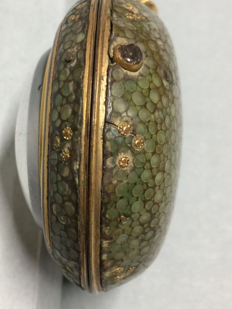 Gouden horloge met twee losse kasten, de buitenste van haaievel