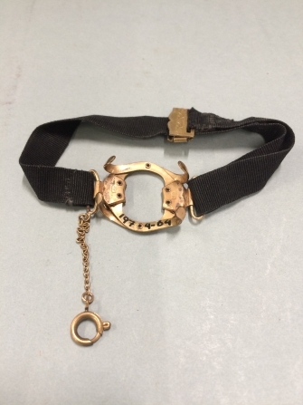 Horlogehouder van goudkleurig onedel metaal aan band van zwart ribskatoen