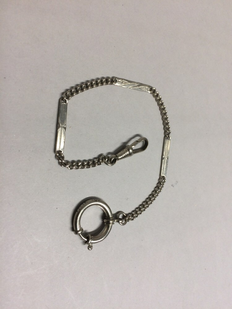 Dunne schakelketting, wordt driemaal onderbroken door plat plaatje