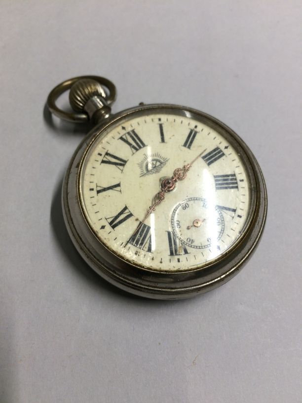 Herenhorloge in een kast met vergulde wijzerplaat en romeinse cijfers