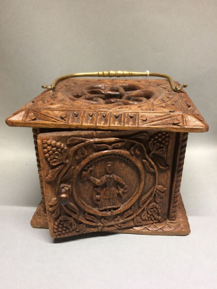 Stoof met op de zijkanten voorstellingen van Hoop, Geloof en Gerechtigheid