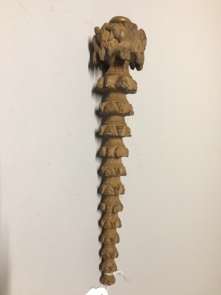 Versierde houten masttop met snijwerk, voorstellende engelen en engelenkopjes