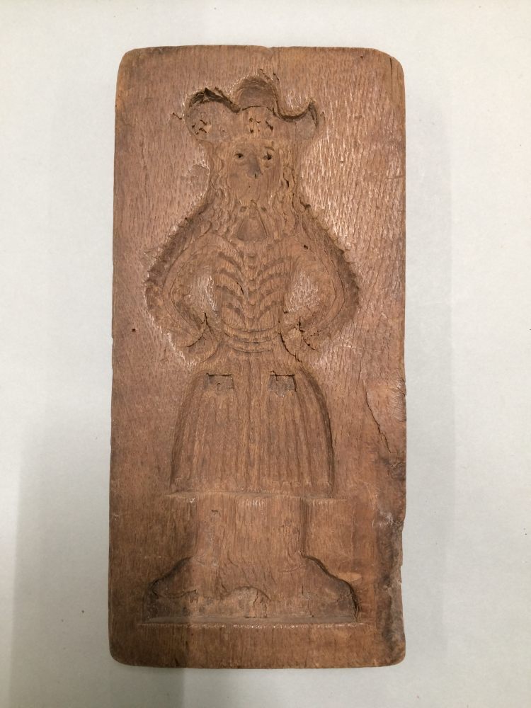 Tweezijdig besneden koekplank met een man en een vrouw in 18e eeuwse dracht