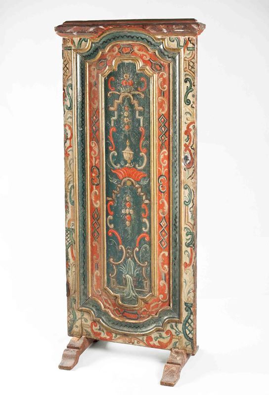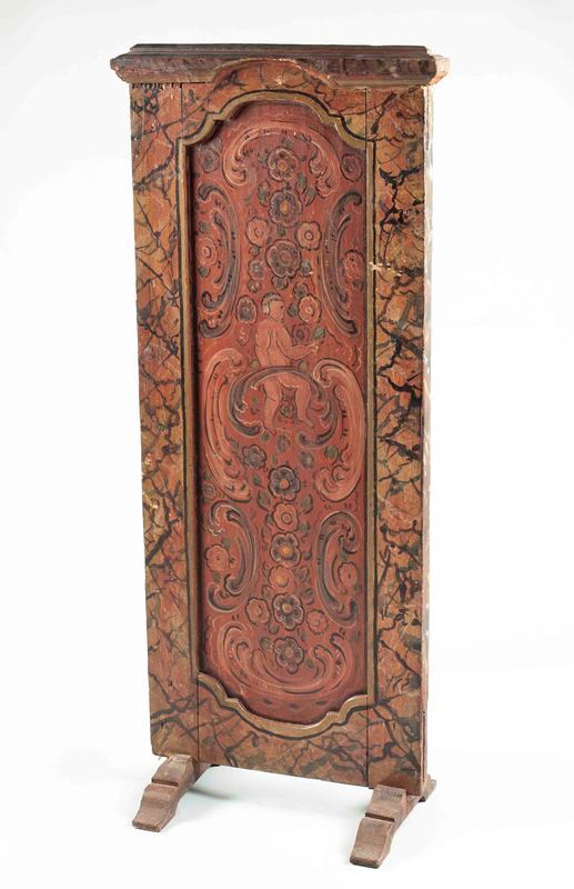 Houten vuurscherm bestaande uit blad en twee poten