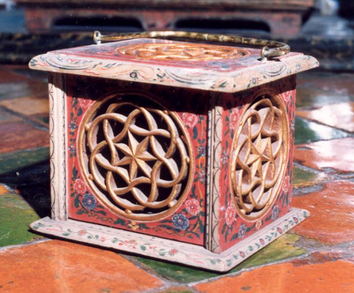 Eikenhouten stoof in Hindelooper kleuren