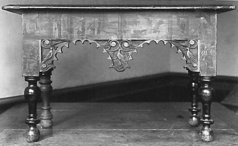 Beddebank met tree en geschulpte trog waarop vogels en ranken