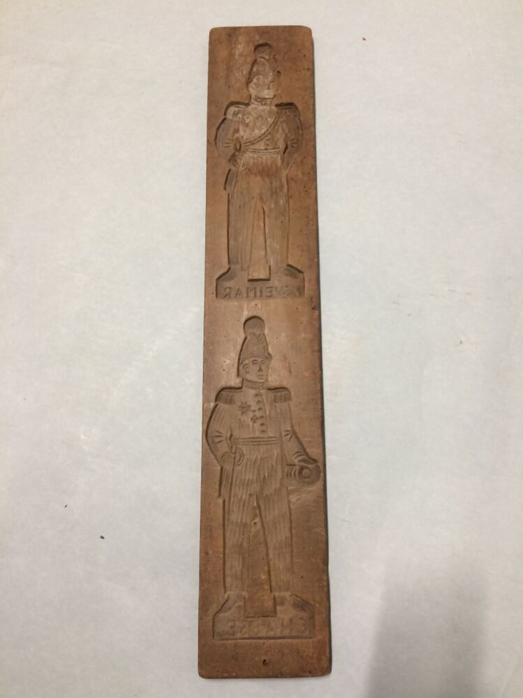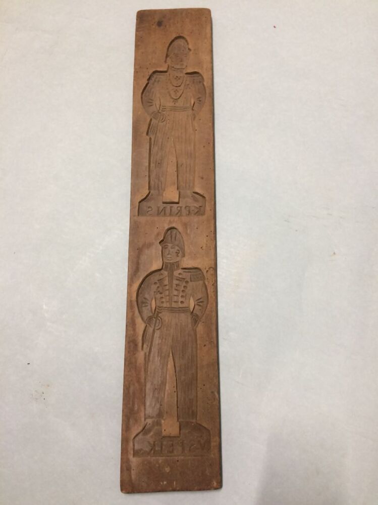 Tweezijdig besneden koekplank, op beide zijden een officier met onderschrift