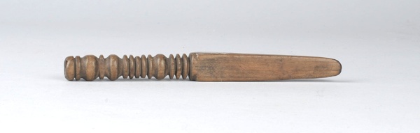 Breischede waarvan boveneinde is gedraaid en veertien kragen heeft, waarvan drie plat kraalvormig.