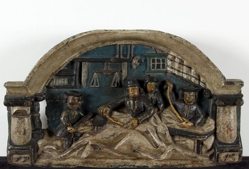 Gesneden doftdeurtje voorstellende een zeilmakerij, met sleutelgat