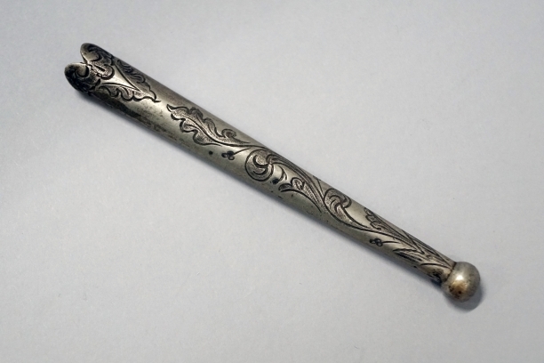Breischede van metaal met op de voorzijde ingekerfde bladrand