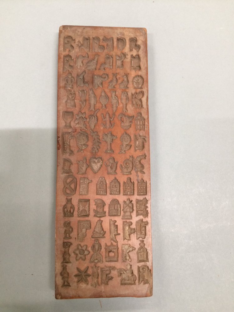 Eenzijdig besneden suiker- of chocoladevorm, met twaalf rijen van zes kleine figuurtjes