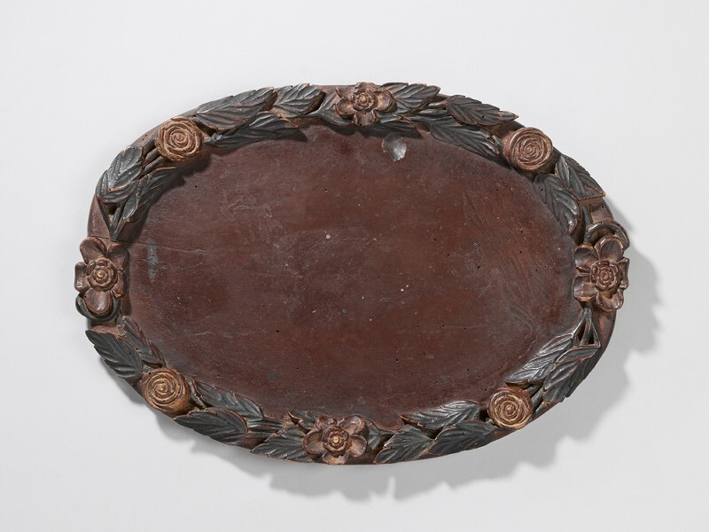 Ovaal theeblad met besneden rand met bladeren en bloemen