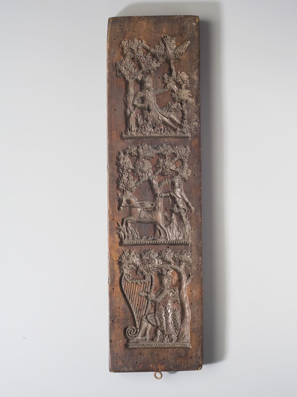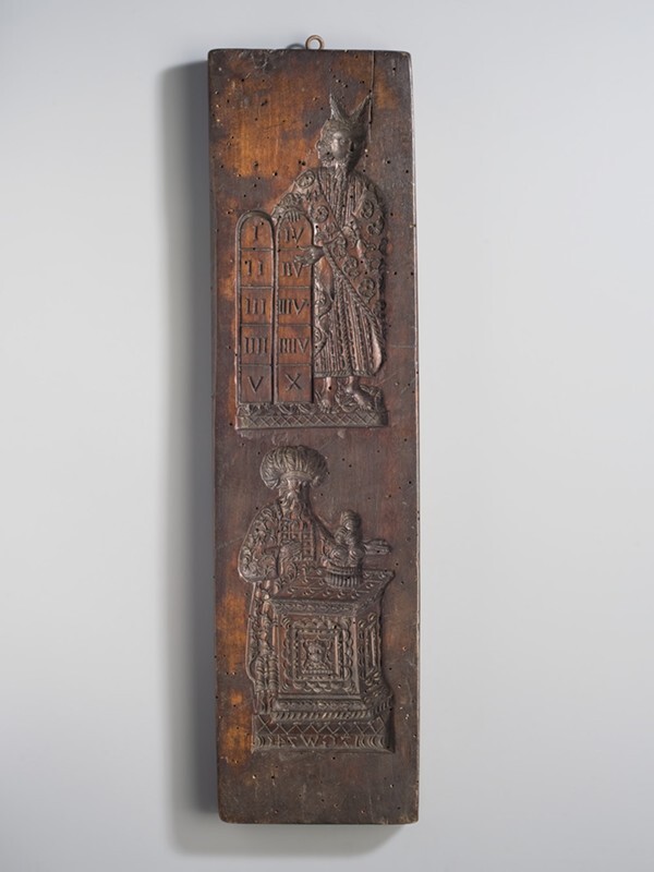 Koekplank, tweezijdig besneden, op ene zijde Mozes met de stenen tafels