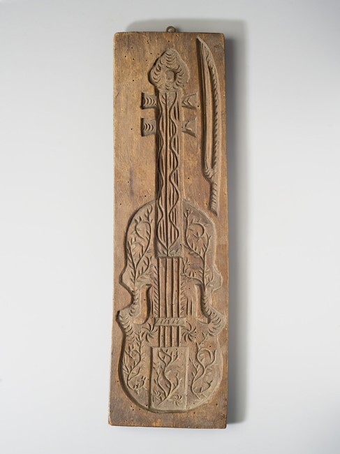 Koekplank, eenzijdig besneden, viool met strijkstok