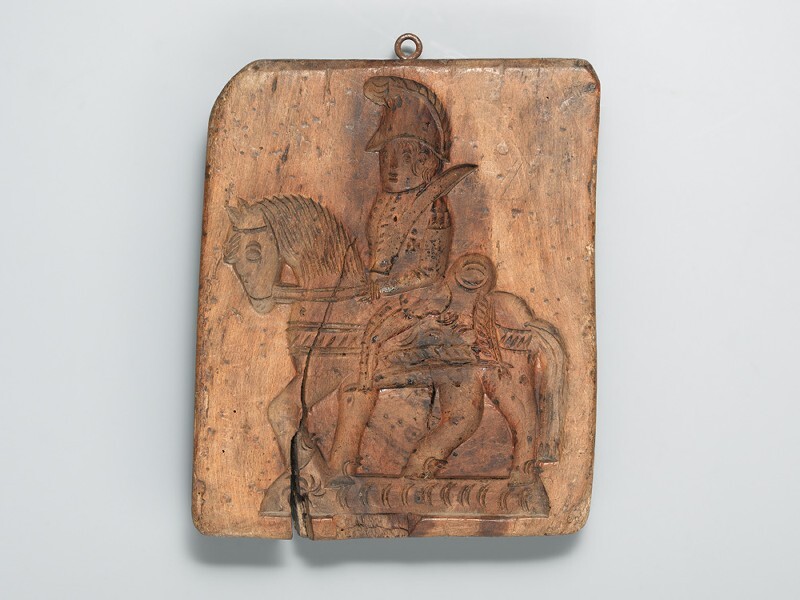 Koekplank, met aan ene zijde krijgsman te paard en op de andere ingesneden JAN HAGEL