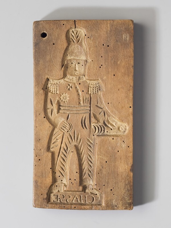 Koekplank van beukenhout aan twee zijden besneden, aan de ene zijde generaal Chassé en aan de andere zijde van Speijk