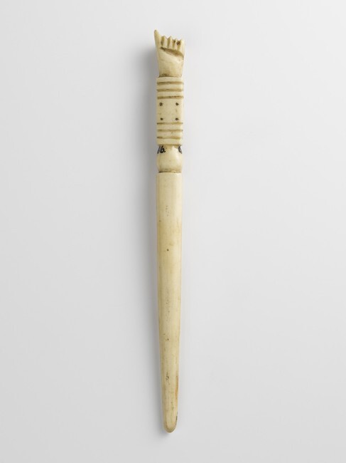 Pijpenpluizer met op de top een dobbelsteen met een gebalde vuist