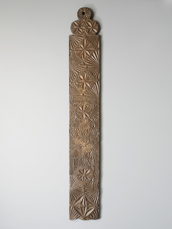 Mangelplank met grof en vrij diep kerfsneewerk, geometrisch patroon