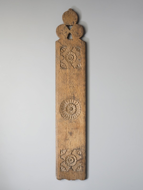 Mangelplank versierd met op de bovenzijde twee rechthoekige figuren die een roosvorm voorstellen