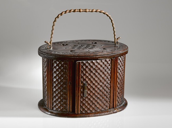 Ovale stoof met in de bovenplaat ajour klaverblaadjes en een roset van zes sterren
