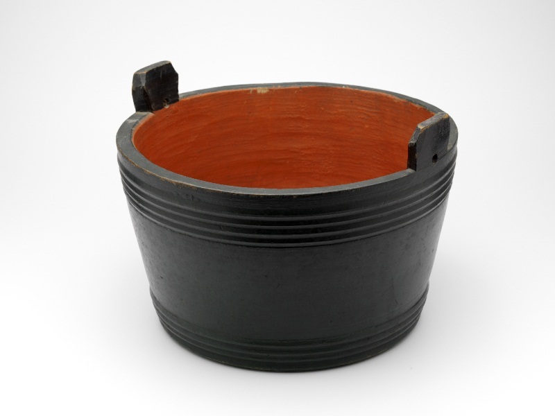 Gedraaide kleine houten tobbe van binnen rood van buiten donkergroen
