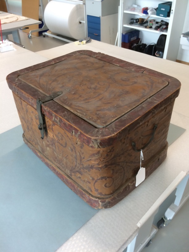 Vierkante spanen budde in Hindelooper kleuren beschilderd