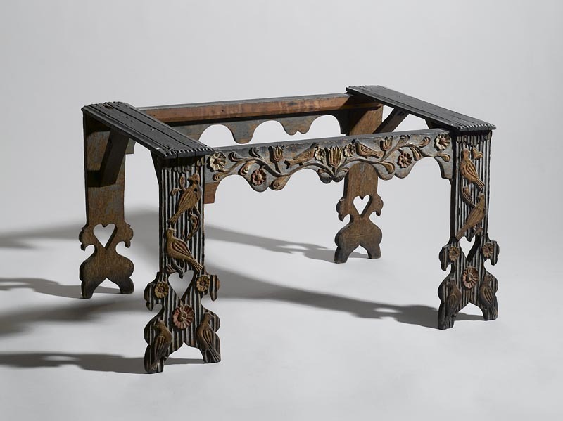Tafelsteunen van middeleeuwse origine, die bestaan uit twee of meer omgekeerde T of Y-vormen die zijn vastgezet met een dwarshout of met beugels. (AAT) https://data.cultureelerfgoed.nl/term/id/cht/7cced196-82bb-444d-a992-1bfc29d68d56