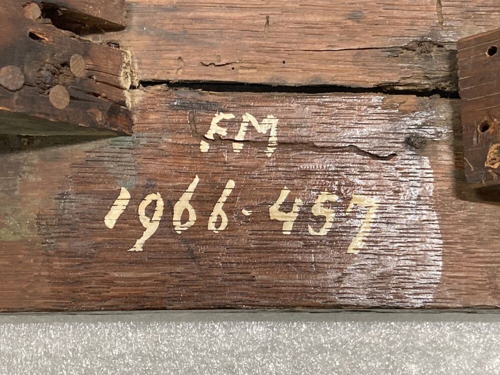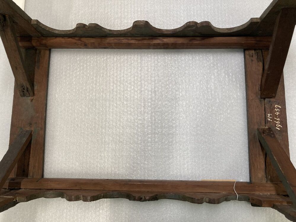 Twee beschilderde schraagjes met elkaar verbonden door een voor- en achterregel