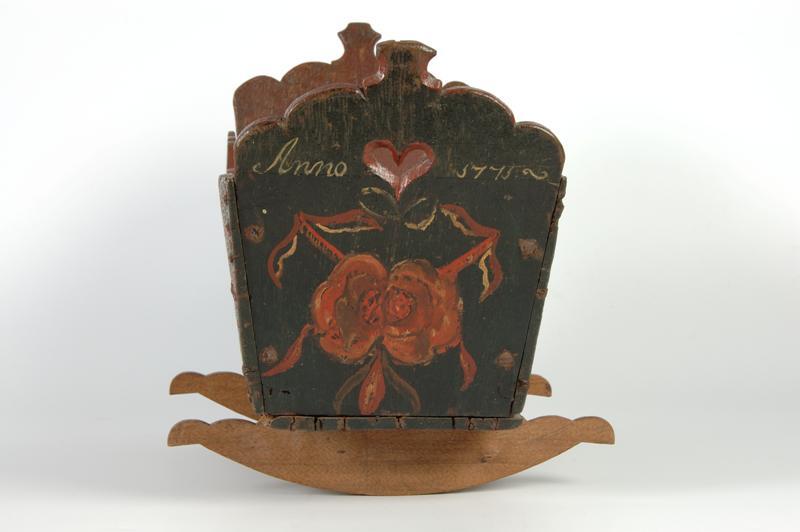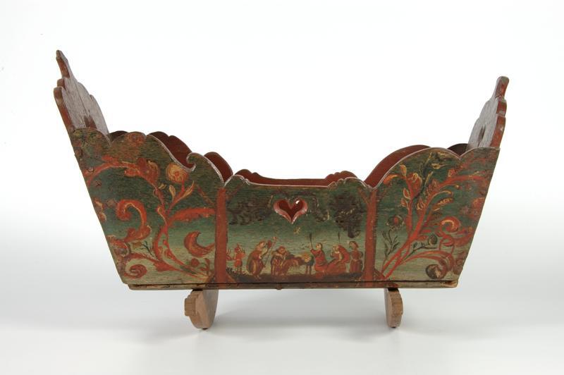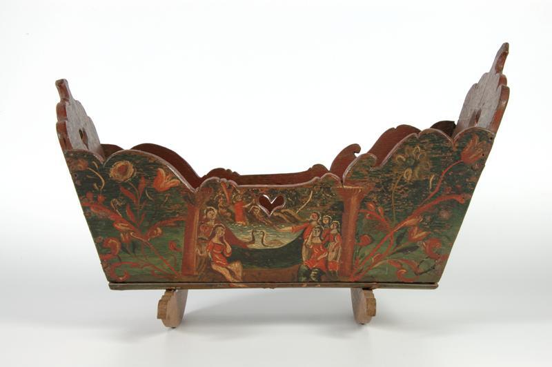 Poppenwiegje beschilderd met bijbelse voorstellingen