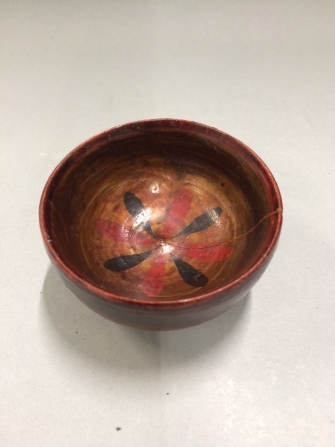 Gedraaid houten riga-napje beschilderd in rood, zwart en goud