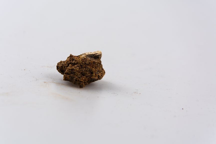 Vier kleine fragmenten van een verbrande kam met een ruitvormige versiering