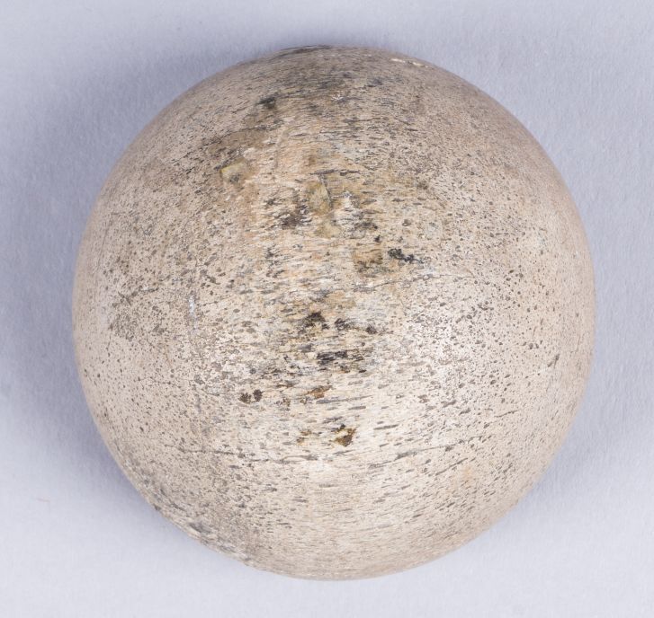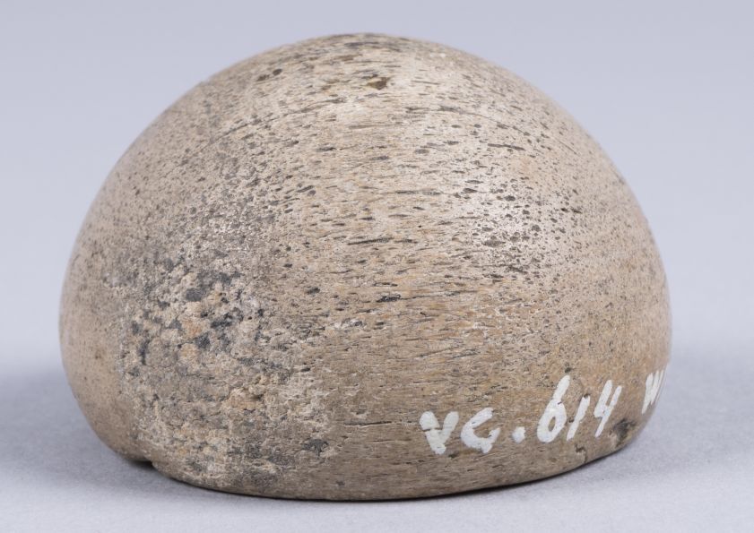 Afgedraaide half-bolvormige speelschijven met twee gaatjes in het platte vlak