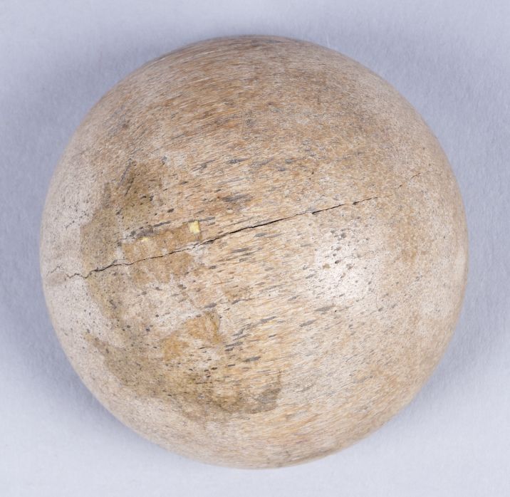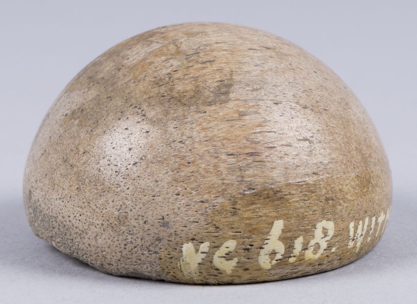 Afgedraaide half-bolvormige speelschijven met twee gaatjes in het platte vlak