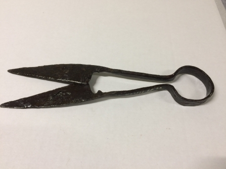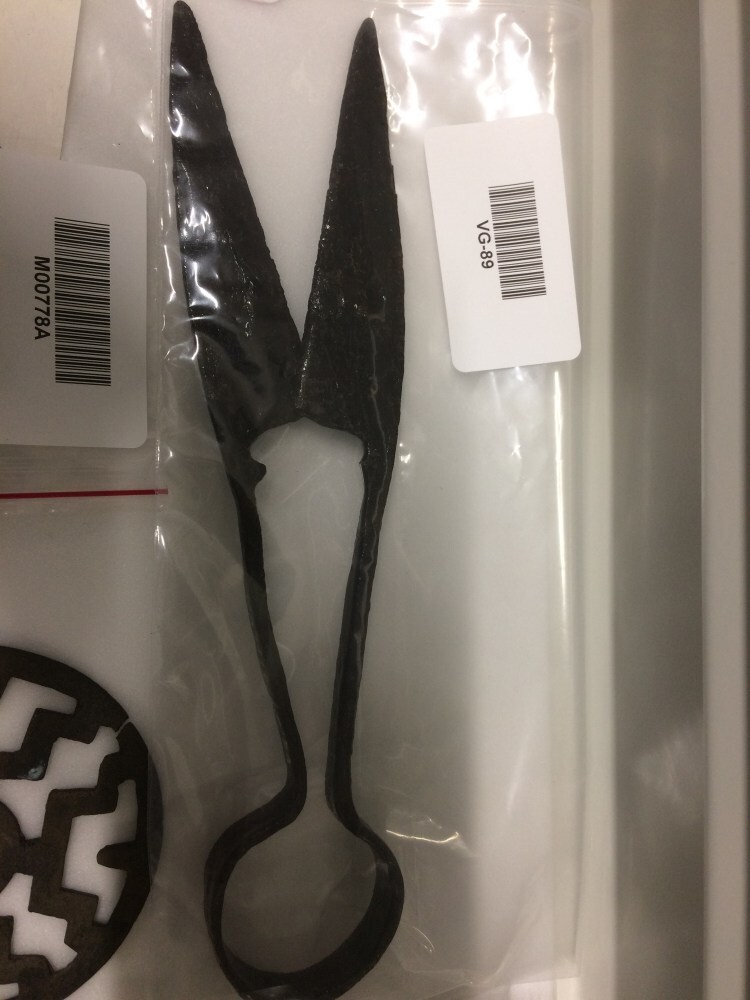 Ceremoniële schaar, mogelijk verguld en voorzien van religieuze voorstellingen. In vrouwenkloosters gebruikt bij de inkleding om een lok af te knippen, in mannenkloosters bij de kruinschering. (Religieus Erfgoedthesaurus) https://data.cultureelerfgoed.nl/term/id/cht/6d0a91a3-b717-4040-b93e-0a908f9d3c7b